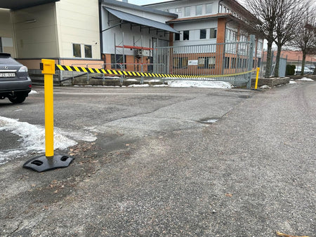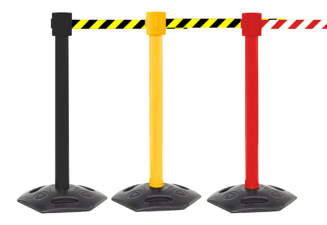 Το FlexiBarrier Outdoor 1050 στηρίζεται σε ανθεκτική λαστιχένια βάση με λαβή που το καθιστά εύκολο στη μετακίνηση. Κάθε στύλος είναι, ως στάνταρ, εξοπλισμένος με υποδοχή που καθιστά δυνατή τη σύνδεση εισερχόμενου ιμάντα από κάθε κατεύθυνση.