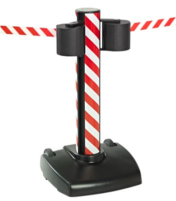 Uvlačiva traka lako se pričvršćuje na sljedeću barijeru ili zid. Kada se odlučite za spajanje na zid, trebat će vam zidni prihvat koji možete pronaći ovdje Također je moguće opremiti vaš Storetrac Double s J-kukom ili magnetskim završetkom trake. Barijera od aluminija i čelika Lako se premješta zahvaljujući ugrađenim kotačima 2 x 22 metra uvlačive trake Boja trake: crveno-bijela, žuto-crna Ukupna težina približno 55 kg (baza teži približno 37 kg) Visina približno 1000 mm Baza 562 mm Preuzmite upute za uporabu ovdje