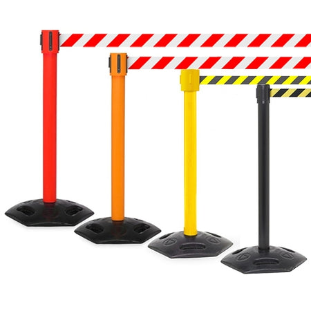 -Outdoor 250- è una barriera portatile robusta, ideale per creare file di attesa all'aperto o limitare l'accesso ad aree di lavoro temporanee. Con una base in gomma riciclata e un paletto in acciaio inox verniciato a polvere, -Outdoor 250- è progettata per l'uso esterno. La base è dotata di pratiche maniglie per il trasporto ed è abbastanza resistente da poter essere attraversata da un veicolo! Il modello Xtra è dotato di un nastro più largo del 50%, che rende la barriera più visibile e conferisce un impatto molto maggiore a loghi stampati e messaggi di sicurezza.