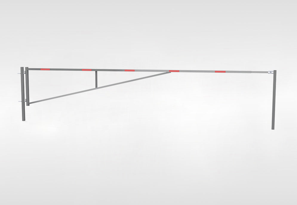 Realizzata con un robusto telaio in acciaio con profili quadri da 60×60 mm, la barriera è zincata a caldo per una protezione anticorrosione a lungo termine. La configurazione standard include marcature riflettenti e una funzione di chiusura con lucchetto.