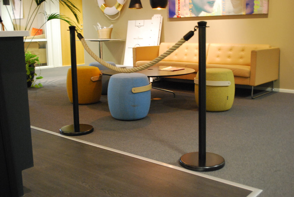 Set od 2 Beltrac Luxor stupića s crnom završnom obradom (proizvedeno u Njemačkoj). Prikladni za unutarnju i vanjsku upotrebu. Uključeno je uže od konoplje duljine 1,5m s odgovarajućim (crnim) završecima.
