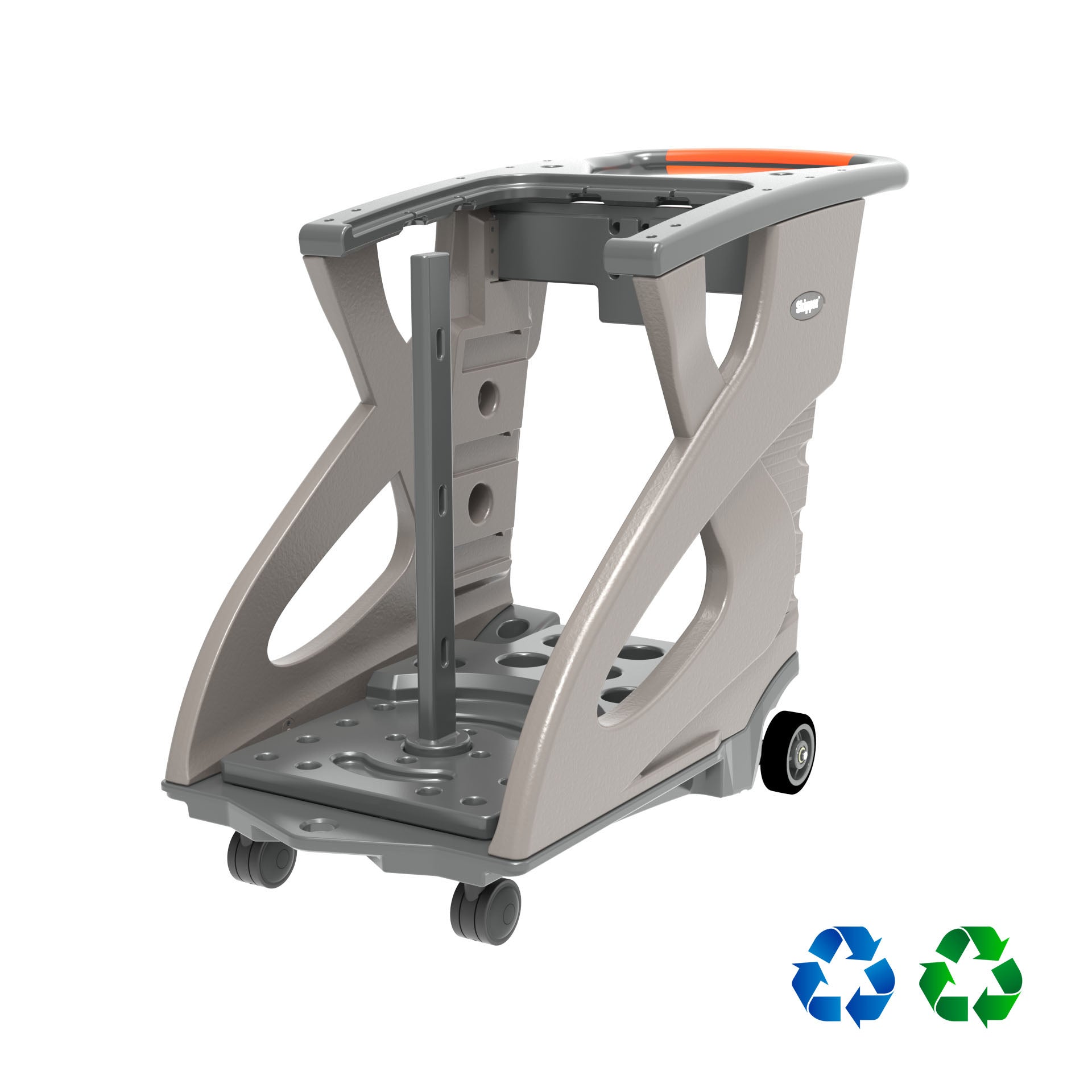Mobilni Unicart u Skipper narančastoj boji za transport i skladištenje komponenti Skipper barijera. Isporučuje se bez proizvoda za barijere.