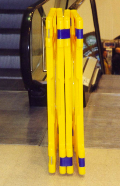 ElevatorGard é um sistema de barreira de segurança para elevadores, dobrável e de alta qualidade, concebido para utilização durante avarias do elevador ou trabalhos de manutenção num edifício de vários andares. Cada conjunto de painéis inclui (2) painéis, com um peso de 4.5kg cada. Cada painel tem 660mm de largura e 1100mm de altura. Cada unidade modular pode ser ligada a outra unidade para formar bloqueios maiores, de acordo com os requisitos do utilizador. Cada barreira inclui postes telescópicos não condutores armazenados no interior, que se estendem até 2.2m acima do nível do piso acabado. Fabricado em plástico de polietileno leve e durável, este sistema de barreira com painéis está em conformidade com os regulamentos de saúde e segurança BS7255:2011 e a recomendação PM26.